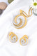 Crafted in sterling silver, this pendant and earring set showcases a striking geometric silhouette with a modern edge. The central design features sharp angular lines framed by a halo of sparkling stones, creating a bold yet refined statement. A sleek fusion of symmetry and sparkle, perfect for contemporary styling.